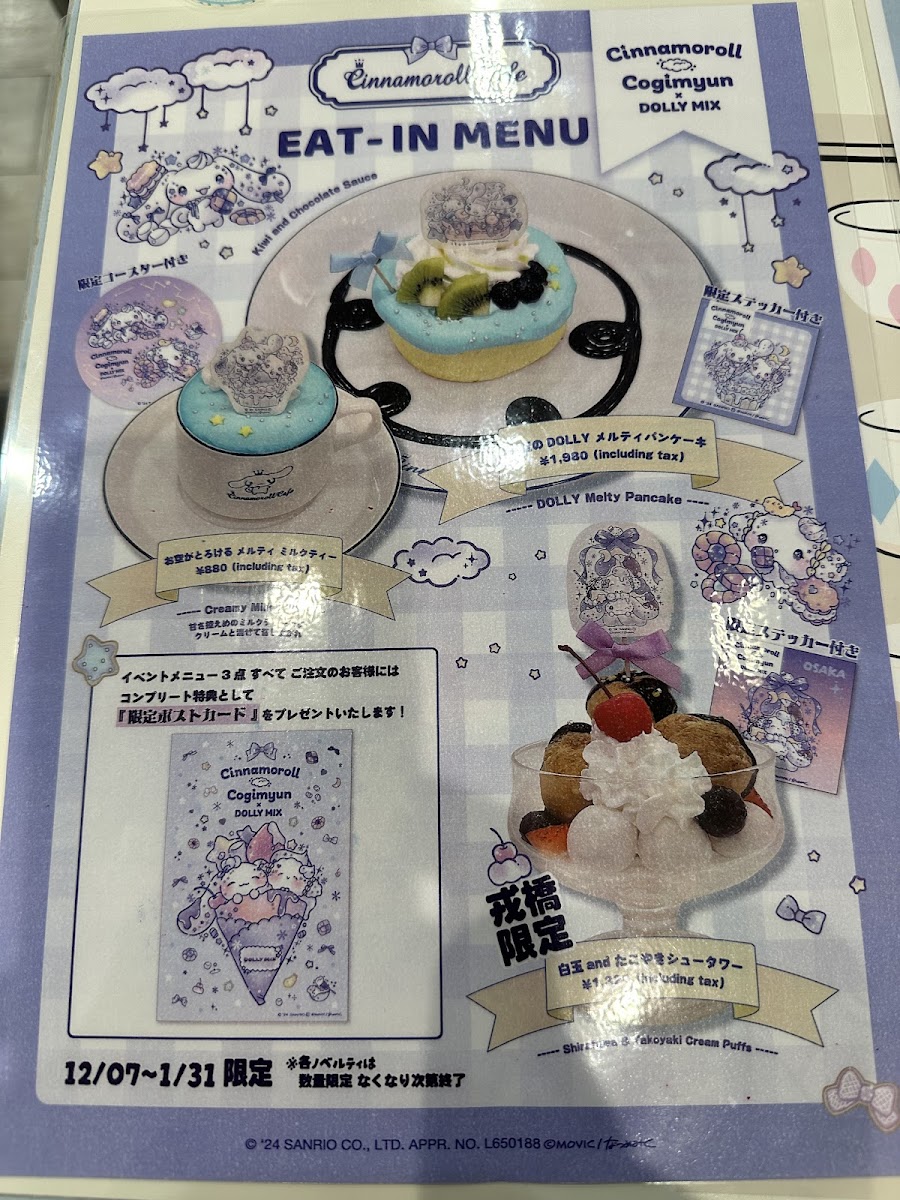 Cinnamoroll Cafe Osaka Namba Ebisubashi Store Menu